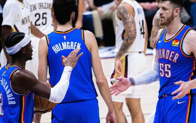 领头羊雷霆在客场126-109战胜西部倒数第一鹈鹕豪取6连胜,这一场比赛雷霆在第一节就打出了49-24的高潮,一节的时间就锁定了胜利。亚历山大只出战了29分钟,又是三节打卡下班,9投5中,三分球5投3中,10罚10中拿到了23分2篮板8助攻。霍姆格伦14投10中,三分球6投3中,4罚3中贡献了26分9篮板。